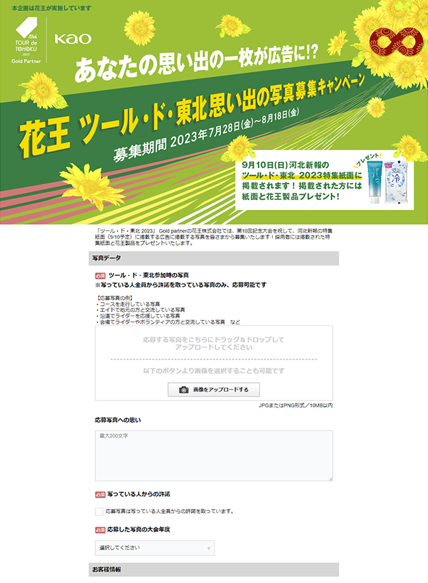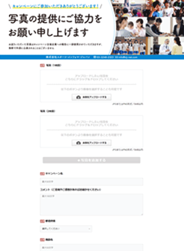 投稿フォームでは、エピソードコンテストのためエピソードの投稿を必須とし、写真は任意で投稿できる仕様に変更しております。