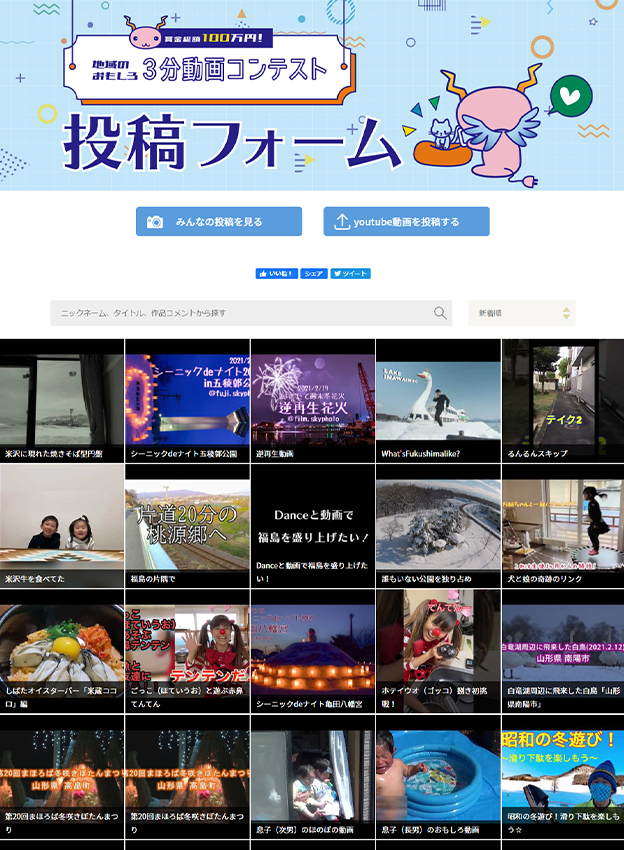 株式会社ニューメディア様 - ケーブルテレビ局で企画された、YouTubeの動画投稿コンテストです。おもしろい・ほっこりする・元気が出る3分動画を募集する楽しい企画です!また、賞品も用意されており受賞者には最大30万円の賞金も用意されております。応募フォームではシンプルな標準仕様となっております。