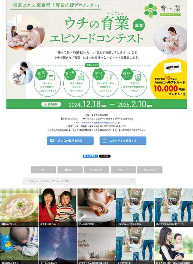 東京ガス株式会社様 - ご家庭で起きた育児に関するエピソードを募集するコンテストです。