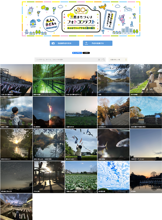 三鷹市様 - 三鷹の魅力を切り取った写真のフォトコンテストです。今年で第30回を迎え、「みんなが選ぶ特別賞」が特設されました。