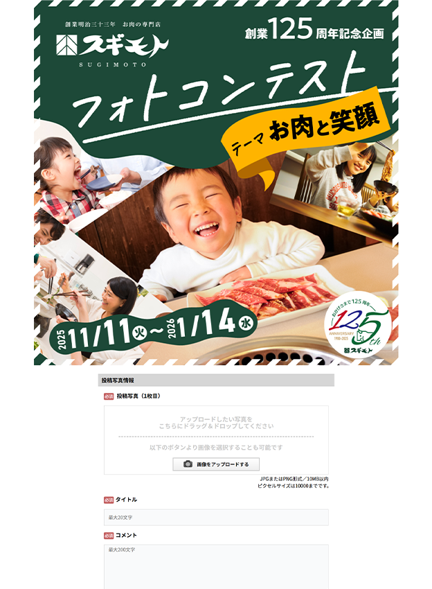 シンプルな応募フォームで、誰でも迷わず写真投稿が可能です。途中離脱を防ぎ、応募数の向上に貢献します。
